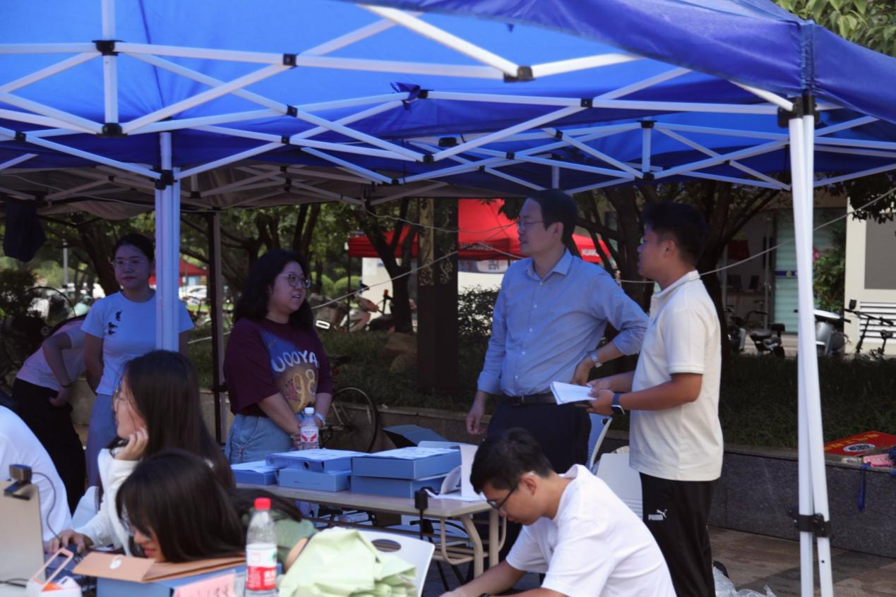 迎新期间,学院领导分别来到南湖校区和文昌校区迎新点慰问迎新点工作的志愿者们,欢迎新同学,并与同学们亲切交流,热情解答新生及家长的问题。