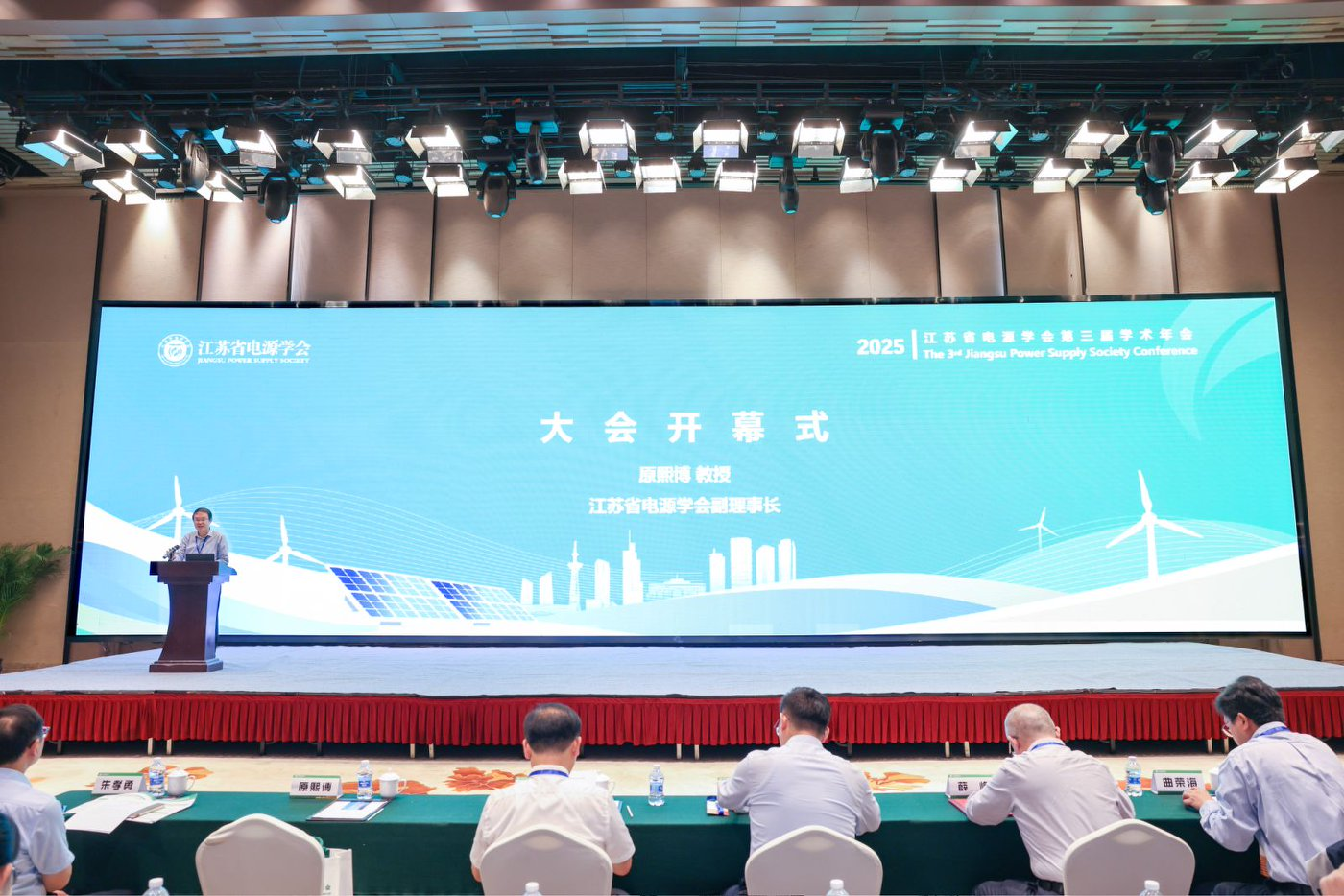 2025年9月26-28日,江苏省电源学会第三届学术年会(JSPSSC2025)在南京顺利召开。我院原熙博院长、夏晨阳副院长、于东升副院长、李小强副教授、廖志娟副教授、张永磊副教授、王凯老师及多名研究生共同参加了此次会议。作为江苏省电源学会副理事长,原熙博院长主持了本次会议的开幕式。