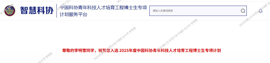 近日,中国科学技术协会(中国科协)顺利完成2025年中国科协青年科技人才培育工程博士生专项计划推荐工作,我院电气工程专业博士研究生李明雪成功入选。