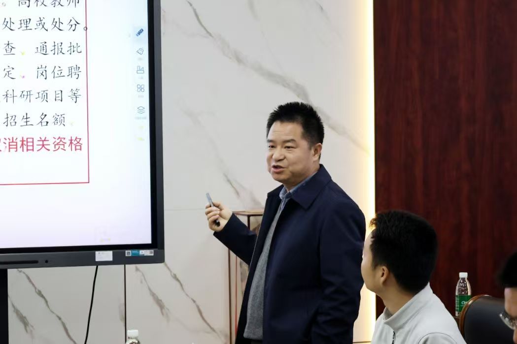 龚成以“警钟长鸣 引以为戒 正心明道 以德立教”为题作师德师风专题报告。他结合《新时代高校教师职业行为十项准则》及教育部相关处理意见,剖析典型案例开展警示教育,强调全体教师要坚守立德树人初心,破心中之贼,明为师之道,争做“四有”好老师。