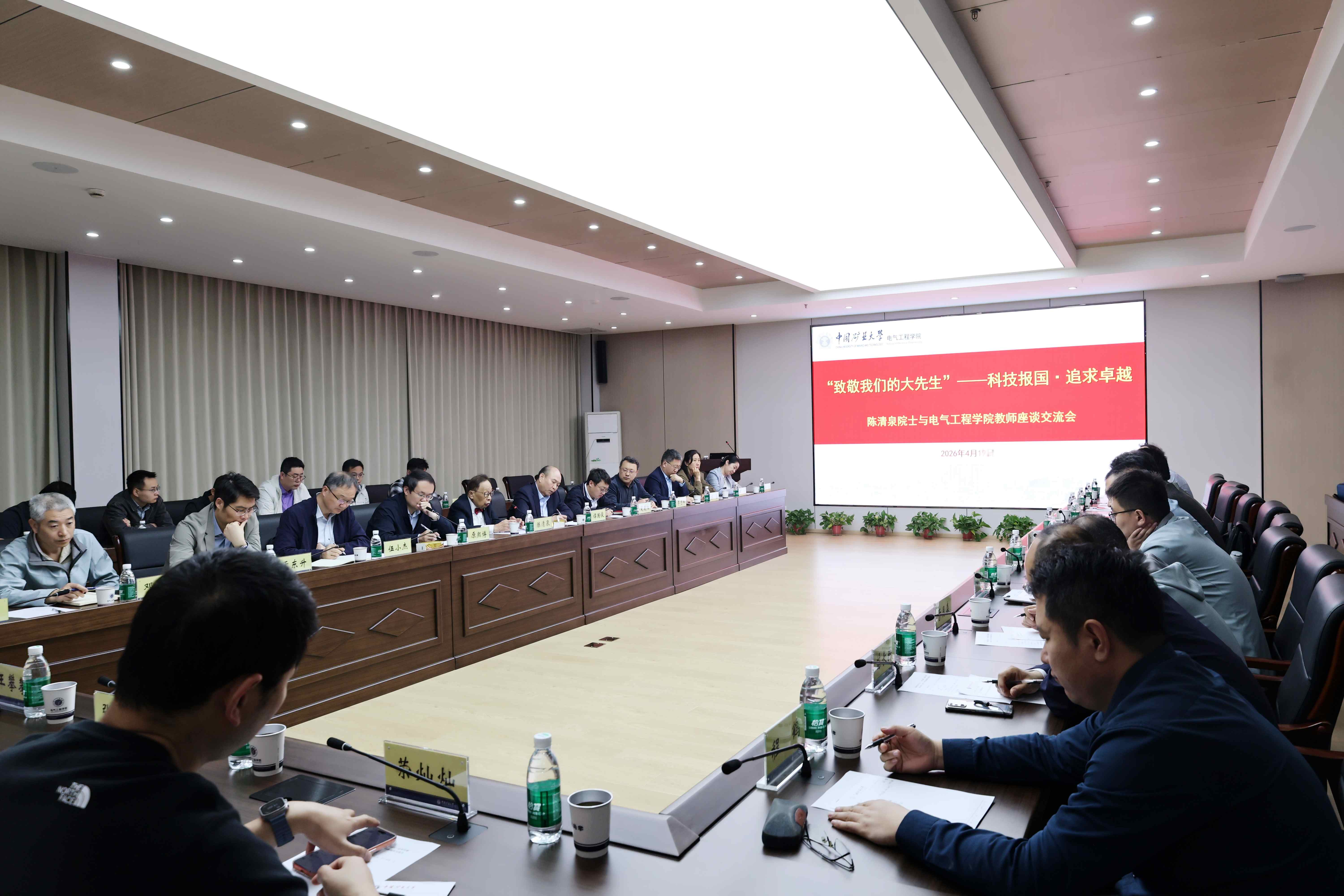4月19日上午,“致敬我们的大先生”——科技报国·追求卓越:陈清泉院士与电气工程学院教师座谈交流会在图书馆第一会议室举行。中国工程院院士、世界“亚洲电动车之父”陈清泉出席座谈会,与学院教师共话学院发展、人才培养与师德传承。电气工程学院院长原熙博主持活动。