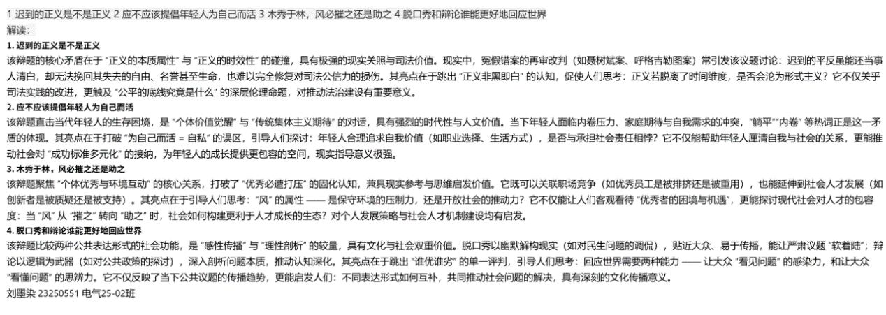 本次辩题征集活动不仅成功激发了同学们的参与热情与思考精神,也为后续各级辩论活动的顺利开展奠定了坚实的基础。希望未来这些凝聚集体智慧的辩题,能在更广阔的舞台上点燃思辨的火花,展现电气学子的风采。