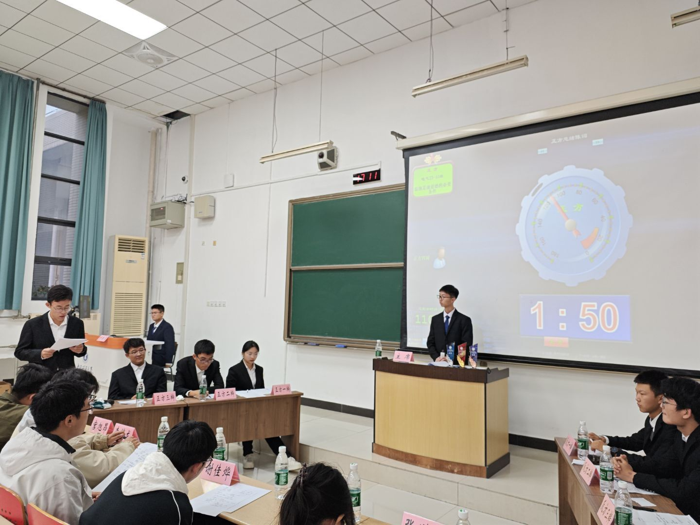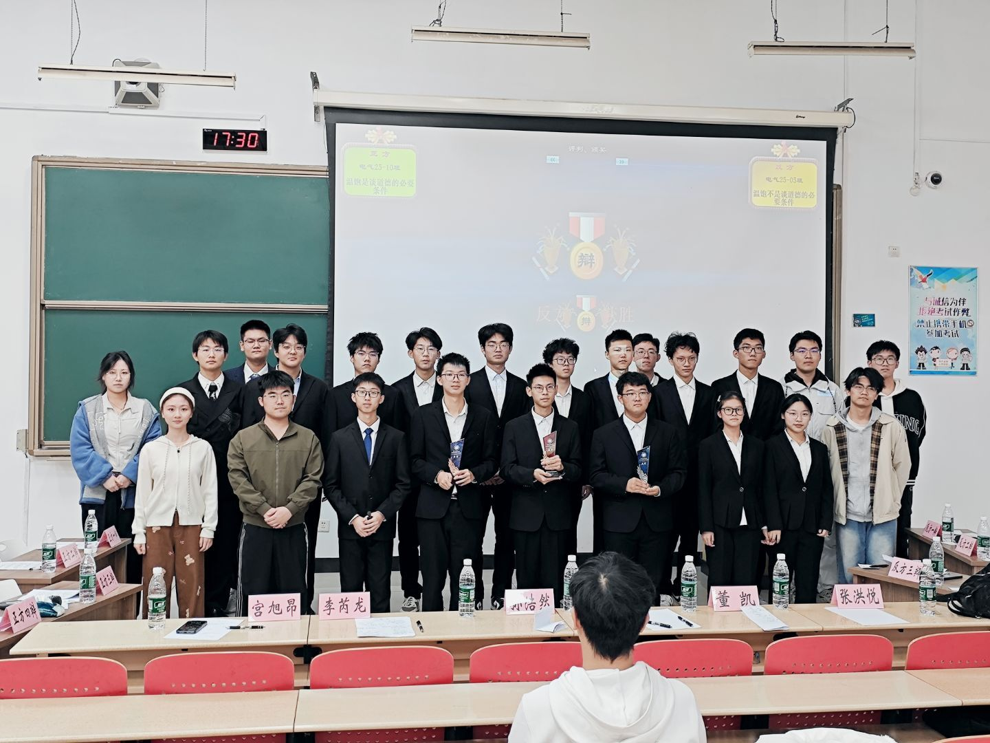 经综合评定,电气25-5班代表队凭借更胜一筹的整体表现摘得桂冠,电气25-10班荣获亚军,电气25-7班取得季军;辅导员宫旭昂老师上台为他们颁发奖杯。正方三辩凭借沉稳的台风、缜密的逻辑与出色的临场发挥,荣获“最佳辩手”称号。