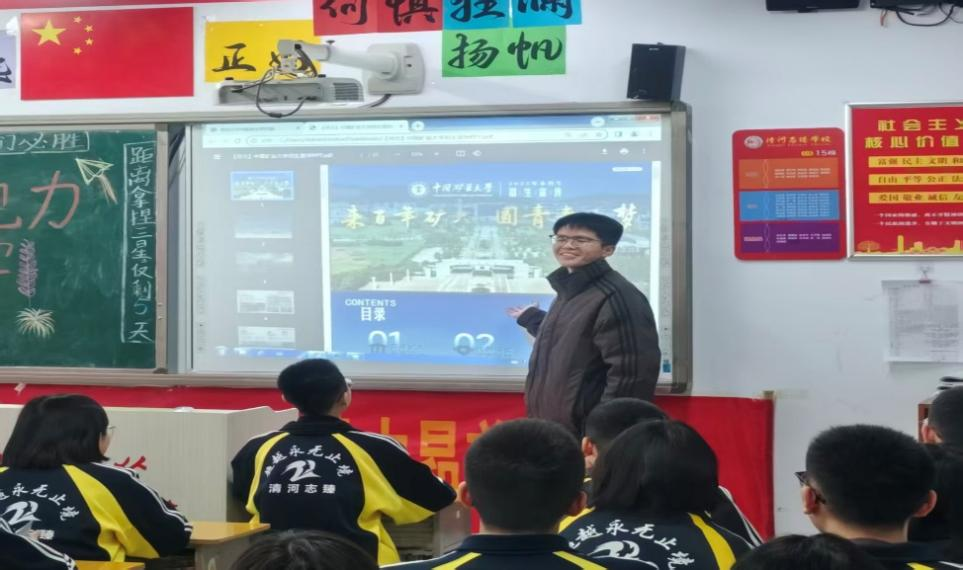 宣讲过程中,我校学子结合自身高考备考经历,从复习规划、重难点突破、心态调节等方面分享实用技巧,针对性解答备考共性问题。同时围绕中国矿业大学的优势学科、招生政策、校园生活等内容展开详细讲解,重点介绍了电气工程学院的专业特色、师资力量、人才培养模式及就业前景,用详实的数据和鲜活的校园生活案例,让同学们直观感受矿大的独特魅力。宣讲后,我校学子向现场学子发放宣传物料与文创礼品,并开展互动答疑,耐心解答高考冲刺、志愿填报、大学生活适应等方面问题,送上高考祝福,现场氛围轻松热烈,学子们专注聆听、积极交流。