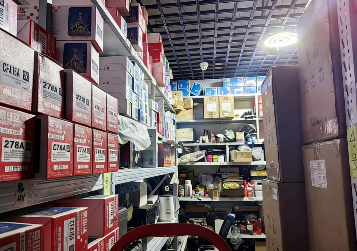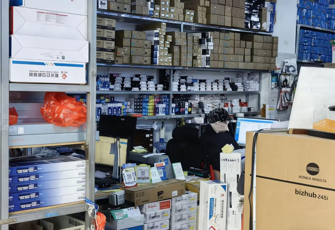 货架上按类摆放的打印机及配件